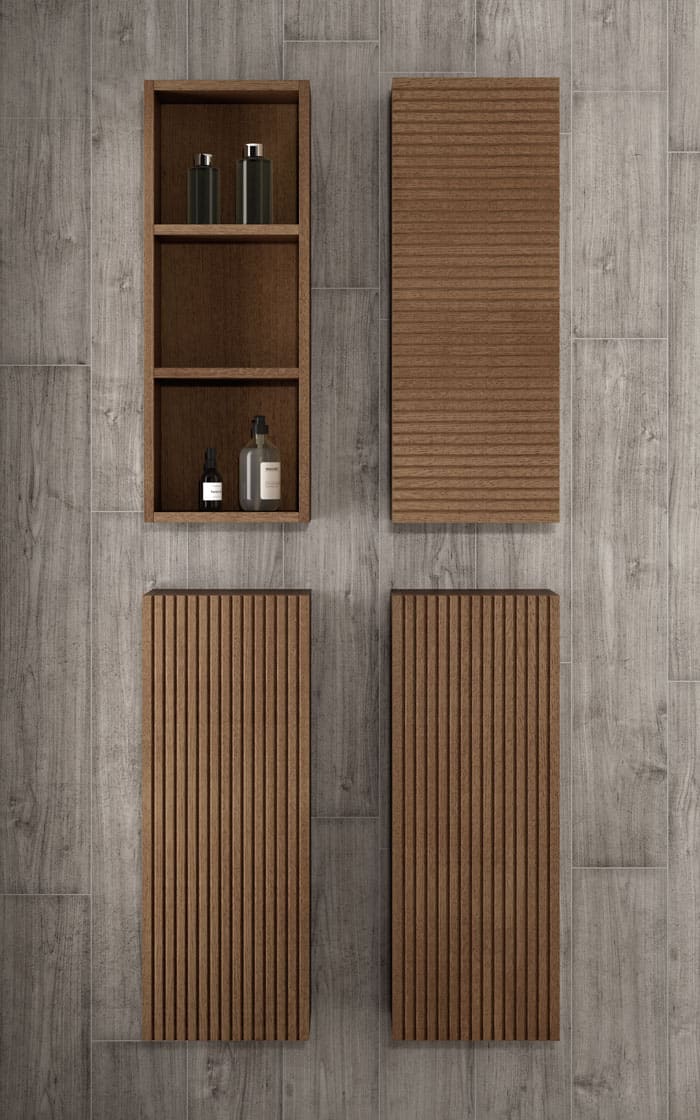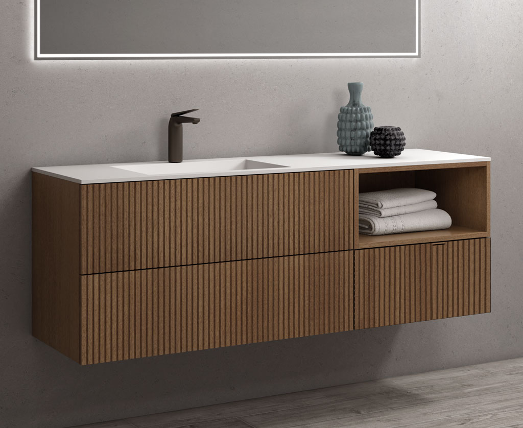 Composición en Madera Robre Miel y encimera Durian® con lavabo Elba 50.
