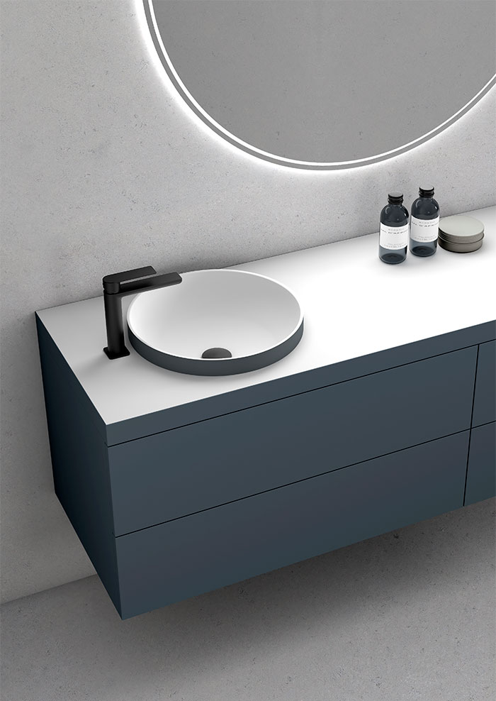 Encimera Durian® con lavabo semi encastre New Pompei en acabado Laca Select Mate XG06.