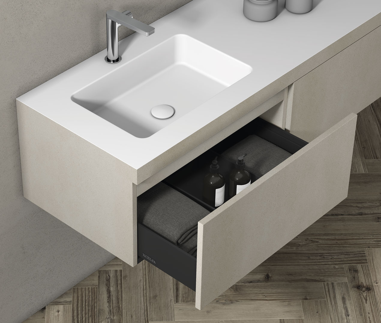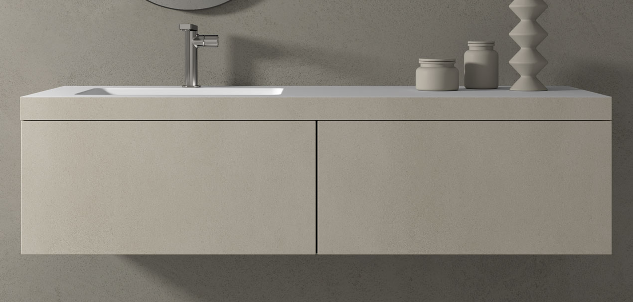 Encimera Durian® con lavabo Florencia 50 y cajones Push modelo V8 Grass® en color Zircon.