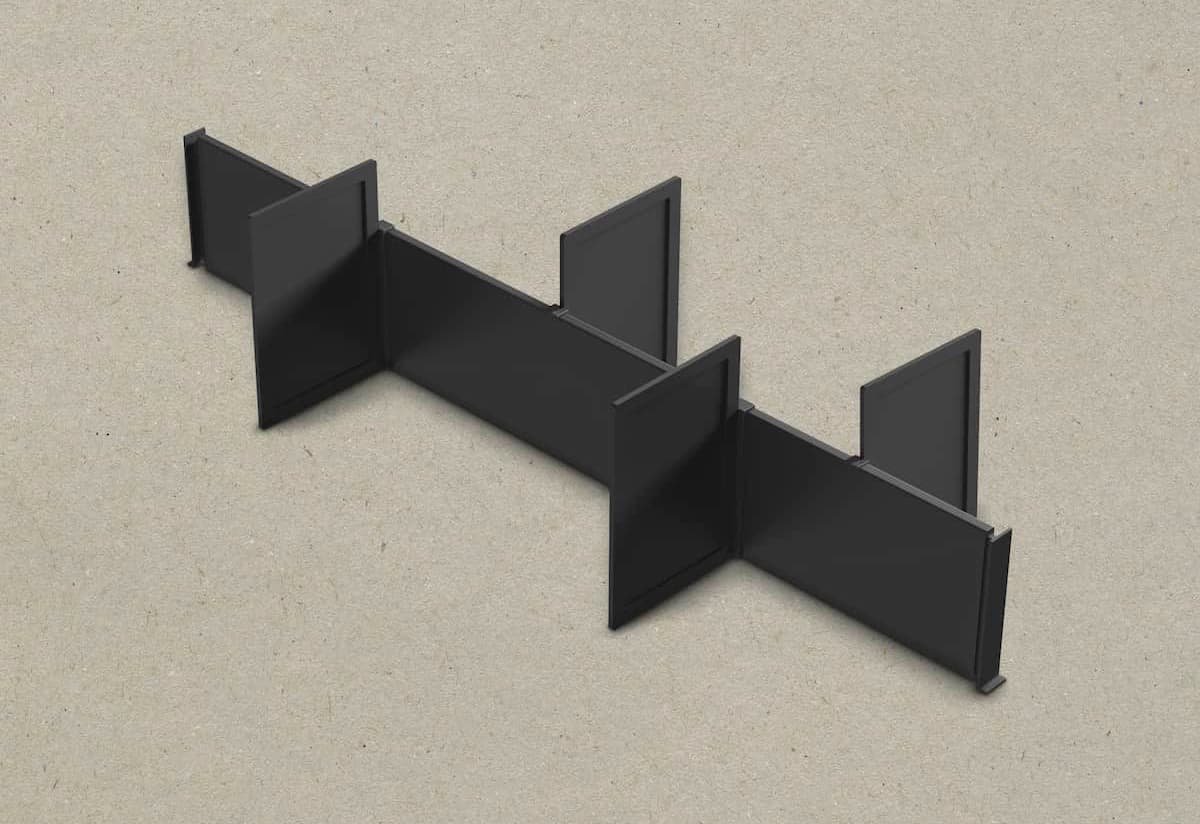 Organizadores de diferente altura y diseño para adaptarse a las necesidades de cada uno además siendo del mismo color y grosor que el cajón exterior se consigue una armonía total.
