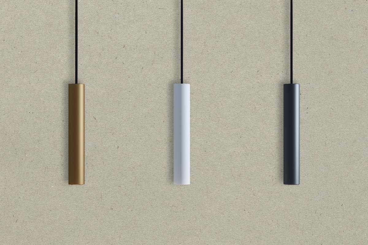 Todas las lámparas tienen opción de tres acabados: blanco, negro u oro.